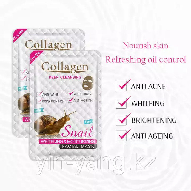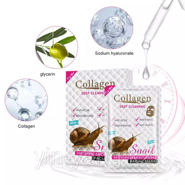 Маска тканевая для лица "SNAIL COLLAGEN" с коллагеном и муцином улитки, 25мл