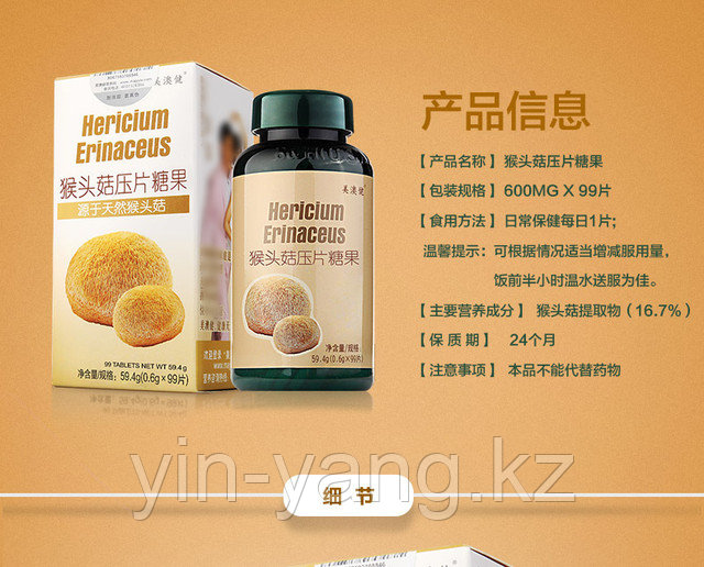 Жевательные таблетки Гриб Герициум (HERICIUM) для активизации иммунной системы, 100 шт