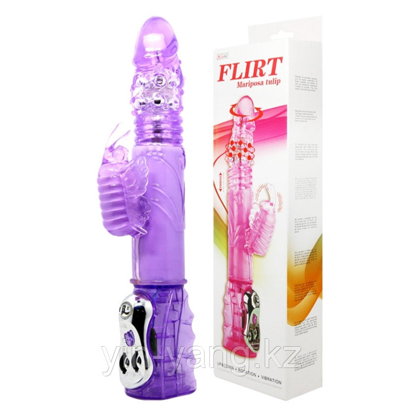 Вращающийся вибратор- ротатор «Mariposa tulip» с заостренной головкой и ребристым стволом, отличный подарок для любимой, который подарит головокружительные эмоции.